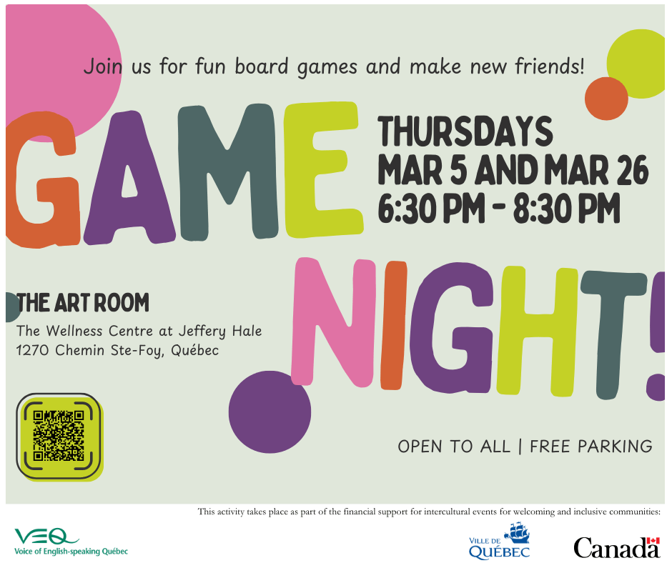 Join us for VEQ’s Game Night at the Jeffery Hale Pavilion from 6:30 p.m. to 8:30 p.m.